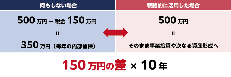 保険を解約し、新たな対策を講じなければ、これまで保険料に充てていた資金(例:年間500万円)はそのまま利益となり、毎年課税されます。