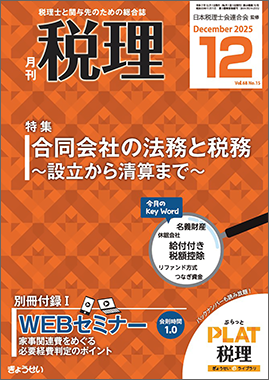 ▪️【月刊 税理 2025年12月号】特集:合同会社の法務と税務 ~設立から清算まで~