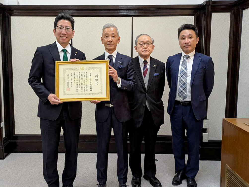 企業版ふるさと納税を通じて鹿児島市の未来を担う子どもたちを支援し、下鶴市長より感謝状を拝受いたしました